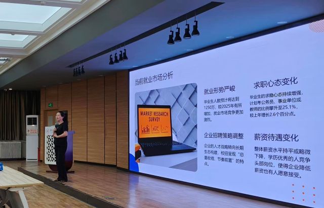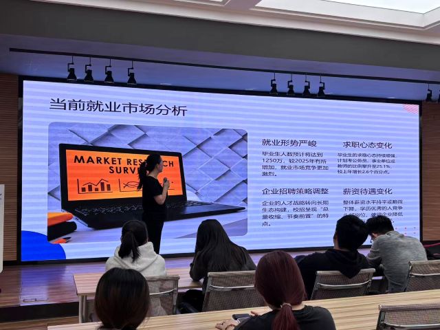 在求职路上,方法和渠道很重要。刘媛媛老师细致讲解求职策略与技巧,同学们应积极关注行业动态,了解市场需求,通过参加实习、项目实践等方式,积累实际工作经验,提升自己的专业技能和综合素质,当前大学生就业形式严峻,职业规划是人生道路上的指南针,应以“极致坚持”应对挑战与拒绝,培养抗挫折能力,制定出符合自己发展的职业生涯规划并加以执行