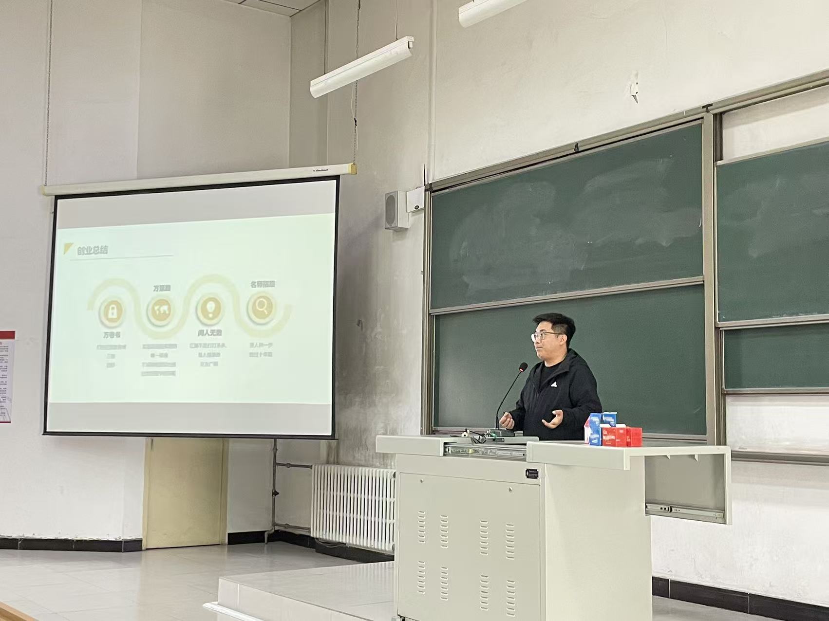 分享会上,库鹏龙学长结合自身创业历程,从“精准布局、认知迭代、风险防控”三个维度拆解创业核心逻辑。他坦言,创业初期曾因资源整合不足、市场判断不够精准遭遇挫折,正是通过持续学习、向行业前辈请教,才逐步找准赛道。针对即将毕业的学子,他分享了“万卷书、万里路、阅人无数、名师指路”的成长理念,强调“你永远赚不到超出认知范围之外的钱”,鼓励同学们在大学期间注重自我认知与优势挖掘,既要扎实掌握专业技能,也要主动积累实践经验。