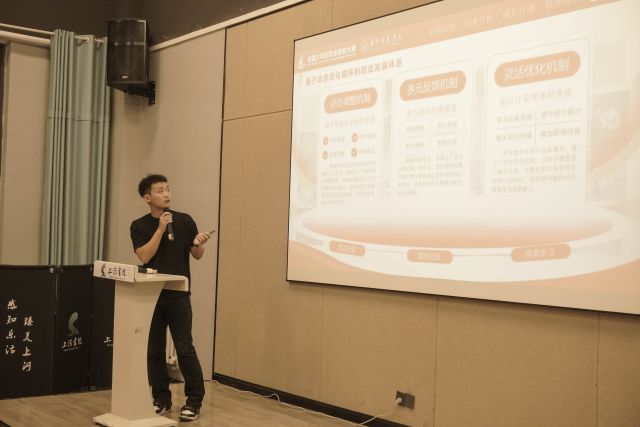 大赛自启动以来,便得到了同学们的广泛关注和踊跃报名。现场气氛热烈,高潮迭起。选手们围绕自我认知、职业环境分析、职业目标设定、实施计划等方面,通过PPT展示、现场演讲、评委提问等形式,清晰阐述了自己的职业规划。曹逸乐同学分享到给自己设计了精神思维模型,核心是创造、担当和探索这三点——这是他入学后在艺术学习及各方面的积累成果。通过科学测评,他明确了自己的四项核心能力:战略级执行力、跨文化转移力、沉浸式叙事力和可信赖领导力。接下来,他也会带着这份热爱与专业,成就更好的自己,为自己的成长按下启动键。