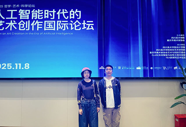 118日,艺术传媒学院数字媒体艺术专业教师张继鹏、刘佳郡受邀参加由四川美术学院主办的2025“人工智能时代的艺术创作”国际论坛暨“流光绘影”国际光影科技艺术节。此次行程以“汲取行业前沿养分、深化产教融合实践”为核心,既见证了人工智能与艺术创作的深度碰撞,也为学院数字媒体艺术专业的教学改革与毕业设计创新积累了宝贵经验。