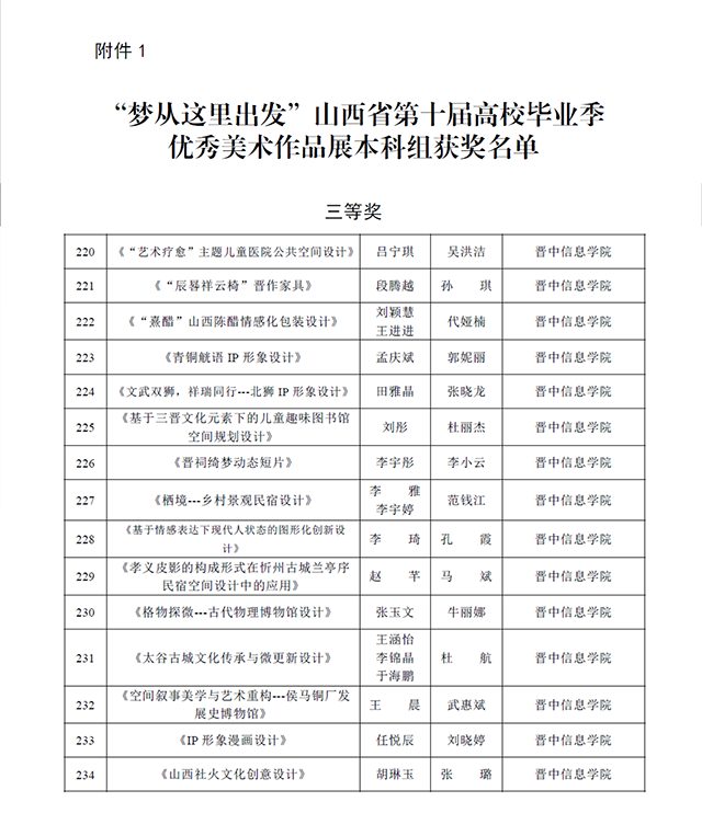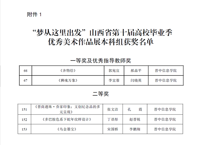 山西省第十届高校毕业季优秀美术作品展获奖情况通报