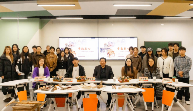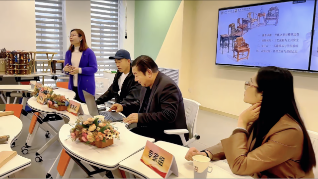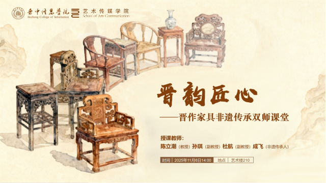 晋作家具不仅承载着晋商文化的深厚底蕴,更凝聚着中国古典木作技艺的智慧精髓。11月6日下午2时,《晋韵匠心——晋作家具非遗传承双师课堂》在艺术楼210教室如期举行。本次活动旨在通过跨学科对话与沉浸式体验,深化学生对晋作家具文化底蕴及非遗技艺的理解,探索非遗传承的创新模式。活动由此次环境设计专业家具设计课程主讲教师杜航主持,特邀学校工科带头人陈立潮教授、艺术传媒学院教学副院长孙琪、晋作家具非遗传承人成飞及环境设计专业李媛老师共同参与,引领学子探寻晋作家具的当代价值。