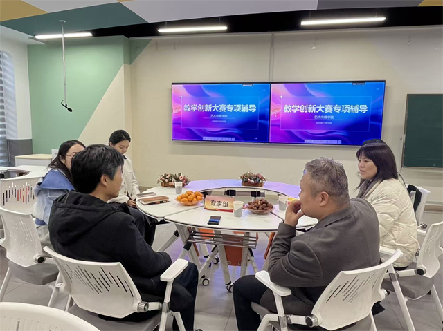 为助力教师精准备赛教学创新大赛,切实提升教学创新能力与课堂授课水平,11月18日下午,艺术传媒学院于艺术楼210智慧教室隆重举办教学创新大赛专项辅导活动。本次活动特别邀请苗迎春教授担任嘉宾评委,学院院长盛卓立、副院长孙琪、视觉传达设计教研室主任孔霞及各专业教师代表出席并全程观摩。