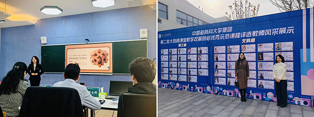 此外,代表团还全程参与了泰山科技学院承办的集团大规模课堂教学改革示范课观摩活动,近距离学习先进教学理念与实践方法。其中,我院闫晓英老师主讲的《设计概论》课程,凭借新颖的教学设计与高效的课堂互动,给代表团留下深刻印象。成员们还与授课教师围绕课程体系构建、教学方法创新、学生评价机制等关键问题展开深度研讨,进一步拓宽了教学视野与改革思路。