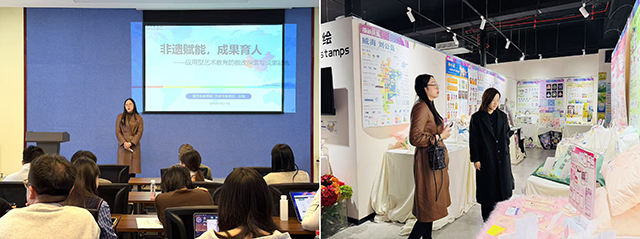 走访结束后,双方召开专题座谈会。孙琪副院长以申报教改项目与教学成果奖为核心作专题分享,结合我院教学实践,详细拆解申报流程、关键要点与成功经验,内容兼具针对性与实操性,获得泰山科技学院艺术传媒学院教师的广泛认可。座谈会后,在院长助理杭颖颖的带领下,代表团参观学习了泰山科技学院艺术传媒学院2025届毕业展,近距离品鉴毕业生在视觉传达设计、影视创作、文创开发等领域的实践成果,作品中呈现的创新思维与非遗文化元素的巧妙融合,与此前探讨的教学融合路径形成呼应,为双方后续深化合作提供了鲜活案例。