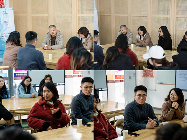 随后的课程改革理念解读环节,课程组教师在闫晓英的带领下,深入剖析了课程设计的底层逻辑;孔霞结合视觉传达专业培养目标,阐述了AI技术与非遗设计实训融合的具体教学思路;盛卓立院长则对课程融入思政元素、以非遗文化涵养设计人才的改革方向给予高度点评与肯定,为课程后续发展指明了方向。在最后的课程成效交流环节,师生们围绕AI设计能力提升、非遗文化认知深化、设计思政素养培育等维度展开热烈探讨,全面总结了本次课程改革的多元成果。