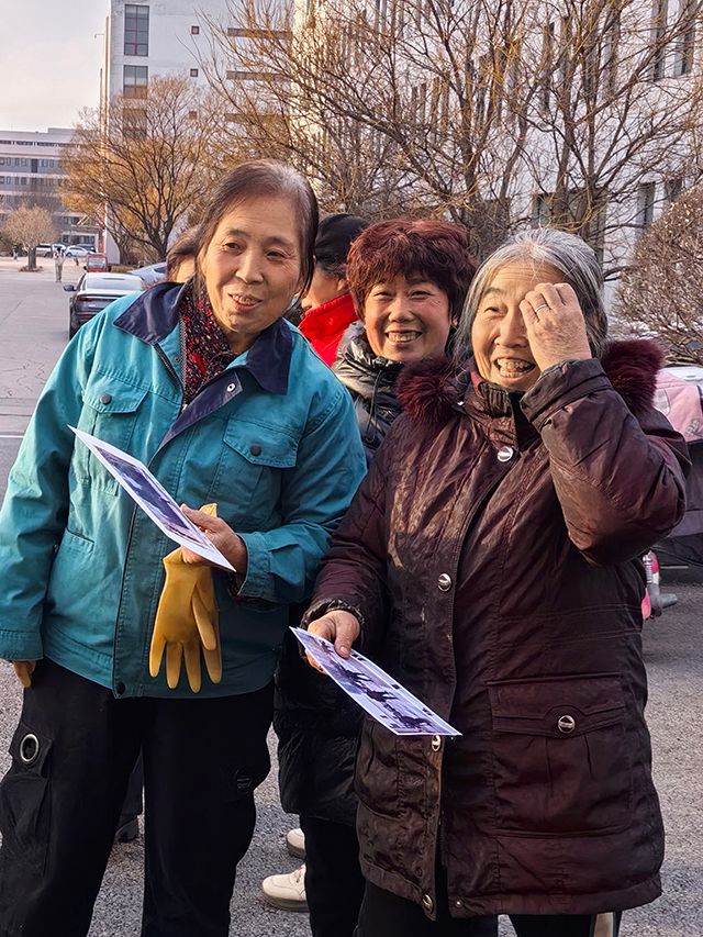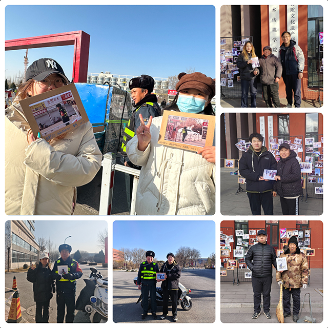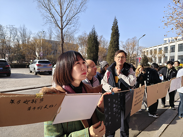 展览现场,一个精心策划的环节将气氛推向了高潮。同学们将自己精心装裱的摄影作品一一命名并亲笔签名,在照片背面写下了真挚的新年祝福语。随后,他们将这些充满心意的礼物,亲手送到了正在校园各个岗位上工作的“主角”手中。当保安大叔、楼管阿姨、食堂阿姨、环卫工人接过照片,看到自己在镜头中专业而朴实的形象时,脸上绽放出了惊喜与感动的笑容。