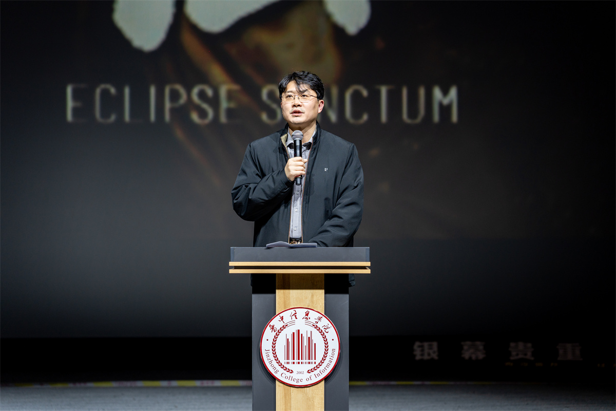 交流会在AI微短剧《蚀影密符》的精彩片段中拉开序幕。学校信息工程学院教师陈晨以“光影与时代的对话”为题,引出本次活动的核心议题:“在AIGC技术深刻重塑影视创作全流程的当下,高校应如何回应?”