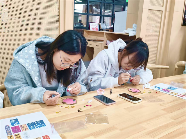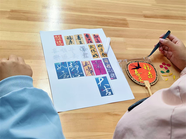 实践环节中,王峰老师穿梭在同学们的座位间,手把手调整大家的麦秆粘贴角度,针对“烫色不均”“图案错位”等问题耐心指导——当看到有同学因麦秆断裂而懊恼时,他笑着分享:“有时候小瑕疵反而能变成作品的独特之处,就像传统文化的传承,也需要在包容中创新。”