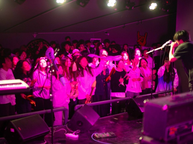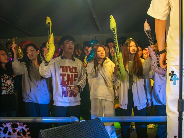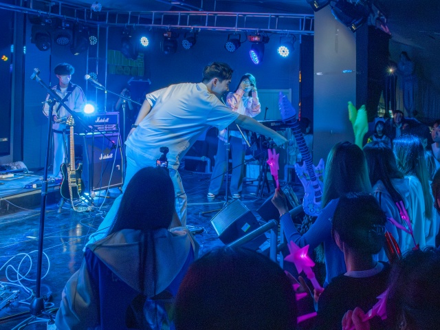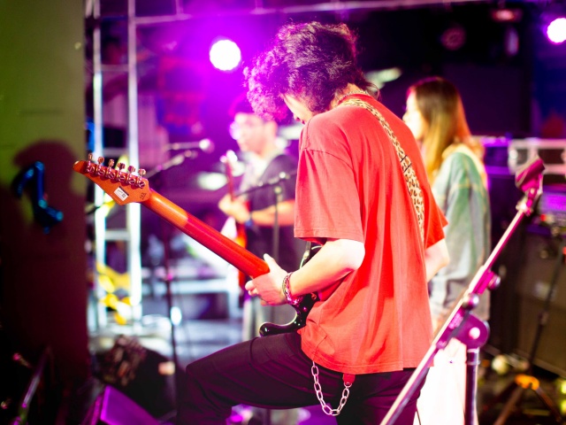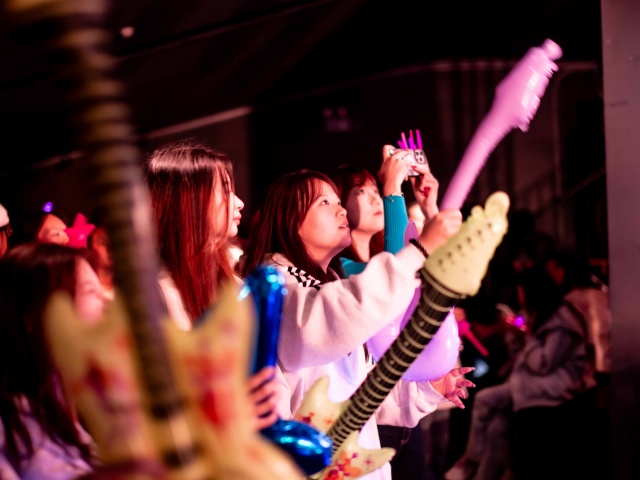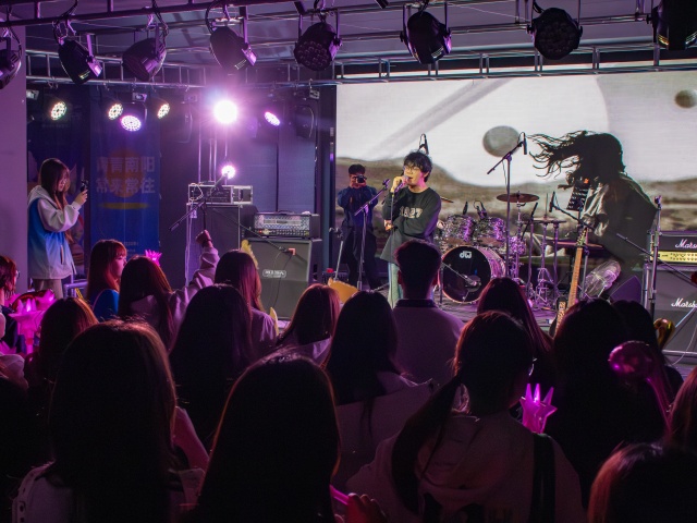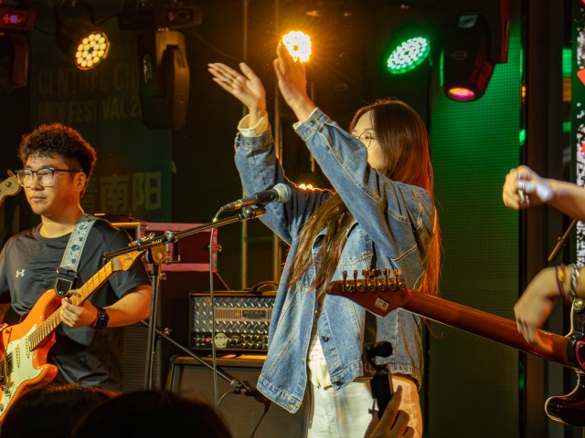 “以艺育心、以情赋能”不是口号,是斑马线乐队率先登场时,全场的欢呼声。《出海》的贝斯声刚漫过live house,前排女生就跟着节奏晃起脑袋,手不自觉地跟着打拍子;吉他solo突然炸开的瞬间,几百部手机的闪光灯“唰”地亮起,举起拍手器像撒了一地星星;《控制》一开场更野!暴雨般的鼓点砸下来,失真吉他的嘶吼裹着主唱的呐喊每一个音符都在呐喊着挣脱束缚的酣畅;直到《彩虹》的旋律漫出来,气氛才软下来——有女生挽着闺蜜的肩轻轻哼唱,手机灯在黑暗里晃成温柔的光河,原来摇滚也能装下青春里的柔软。