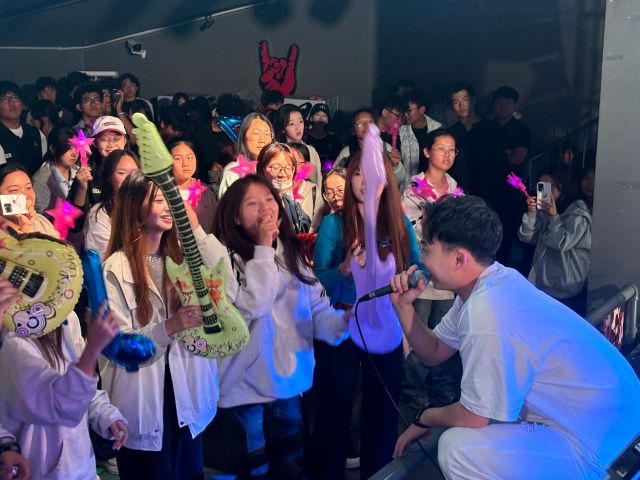 舞台的边界早被光海揉碎,连呼吸都裹着节奏的热度。2025级新生王一帆《恋爱循环》的甜调一出口,她突然笑起来——马尾跟着晃,歌声里的紧张慢慢散了,只剩敢把真心唱给全场听的鲜活。后来《那年秋》的怀念、High Five开场《找自己》的重现,台下的跟唱裹着挥舞的手臂,成了灵魂的共鸣。此刻哪还有台上台下?只有敢站出来做自己的王一帆,和一群借音乐敞开心扉的我们,都在热爱里闪闪发亮。