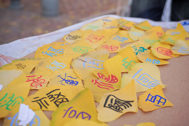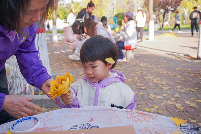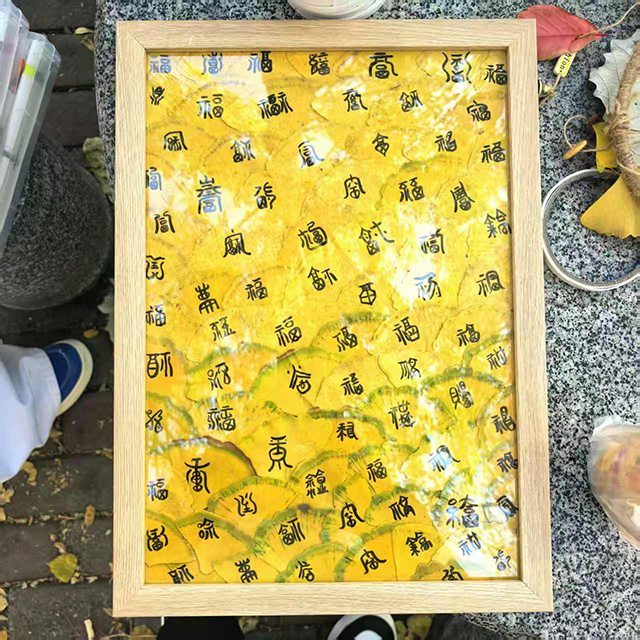 最是动人的集体共创环节,众人拾叶,分工协作,以银杏为墨、以心意为笔,拼贴出一幅寓意绵长的“百福图”,将金黄的银杏叶一片叠着一片,在画布上渐渐铺展出饱满的“福”字,阳光洒在叶片上,折射出温暖的光泽。