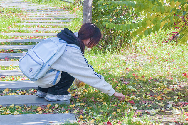 同学们签到后,便循着秋意四散开来,弯腰捡拾心仪的落叶:指尖拾起的每一片落叶,既为手作留存了秋光的诗意,更悄悄减轻了保洁人员的辛劳,让这份对自然的热爱化作实实在在的行动。这看似简单的捡拾,是对“爱护校园”最生动的诠释——它让我们懂得,美好环境从不是理所当然的馈赠,而是需要每个人用举手之劳共同守护,也让环保的种子在秋意中扎根,在心底生长出责任与温情。