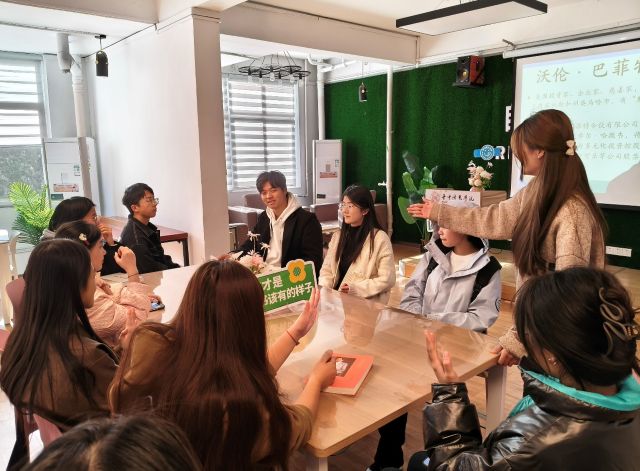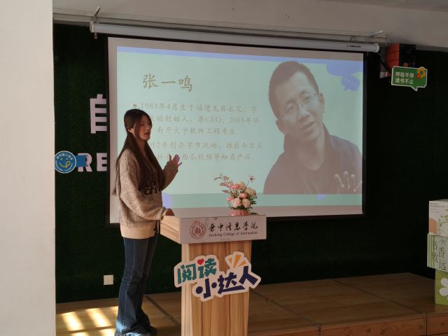 活动在沉浸式的“主题引入”环节中拉开帷幕。PPT流转着中外文学大咖的身世剪影,从乔布斯的极致创新到富兰克林的自律深耕,从《永恒的活火》的辩证哲思到《用技术说话》的实干锋芒,从lululemon创始人的细节坚守到《我看见的世界》的心灵觉醒,搭配大咖经典语录的原声音频片段,文学与声音艺术的融合魅力扑面而来,快速唤醒了在场同学的阅读记忆,为后续环节铺垫了浓厚的文化氛围。