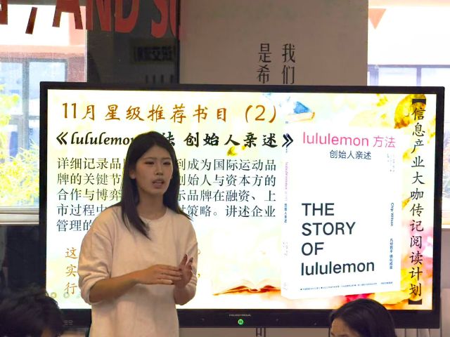 在主题引入环节,主持人深入阐述了本次活动的核心目标——打破学生对书籍“仅知书名,难窥内涵”的认知壁垒。讲解不仅聚焦大咖推荐的经典著作,更着重介绍了这些行业先驱的人生经历与永恒精神。现场,一位科技领域的开拓者深情回顾《我看见的世界》如何成为他破局前行的灯塔;一位文化学者则细述《lululemon方法创始人亲述》如何重塑其对文明图景的理解维度。这些生动分享,让小艺学子深刻理解了书籍背后鲜活的思想人格与价值信念,让静默的纸页化作承载生命体悟与思想光芒的"智慧胶囊"。