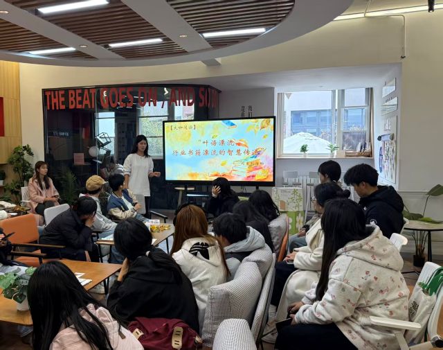 11月12日下午,毣谷书院胶囊书局内灯光温暖,艺术传媒学院“大咖阅读”系列全新活动——“叶语漂流:行业书籍漂流的智慧传递”在初冬薄暮中拉开帷幕。活动通过‘观—听—创—享—悟’五个精心设计的环节,带领近三十位小艺学子完成了一场从认知到实践、从接收到创造的深度阅读体验。