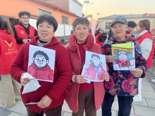 活动筹备阶段,志愿者们便深入太平庄村的街巷院落,挨家挨户走访慰问,为参与活动的老人拍摄高清肖像照。一句句亲切的“爷爷好”“奶奶保重身体”,一次次耐心调整拍摄角度,不仅定格了老人们历经岁月沉淀的容颜,更让这份牵挂与尊重悄然住进老人心里。这些饱含温度的照片,成为后续肖像创作的珍贵蓝本,只为给每位老人定制独一无二的彩色画作。