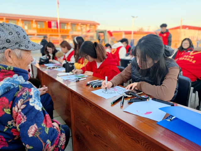 以画为礼,绘不尽岁月深情;以伴为暖,抵得过世间寒凉。为响应乡村振兴战略中“老有所乐、老有所安”的精神文化建设号召,11月14日下午,“益”起伴老专项志愿服务队在张天歌老师的带领下,携“‘正午·晚霞’伴老聚乐会第二章——肖像载温情”活动走进太平庄村,以艺术为媒、以真心为桥,为村里的老人们送上了一场满含敬意与暖意的文化盛宴。