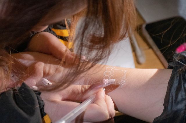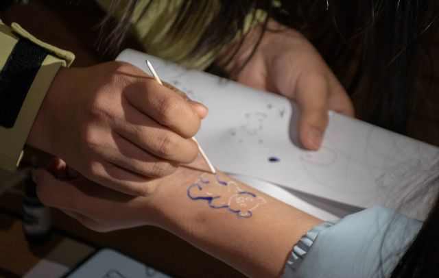 赴一场沉浸式文化之约,以手绘传情,共赴海娜艺术的创意狂欢!本次海娜手绘活动经过精心策划,设置了丰富多元的体验环节,让参与者在领略这一古老艺术深厚历史文化的同时,也能亲手执笔,感受创作的乐趣与自由。现场准备了由天然植物原料制成的海娜膏以及专业绘制工具,确保体验过程既安全又专业。从简约的几何图形到繁复的花卉藤蔓,从流畅的线条勾勒到精致的图腾描绘,每一笔都凝聚着参与者的专注与创意,每一件作品都成为个人审美与个性的独特表达。