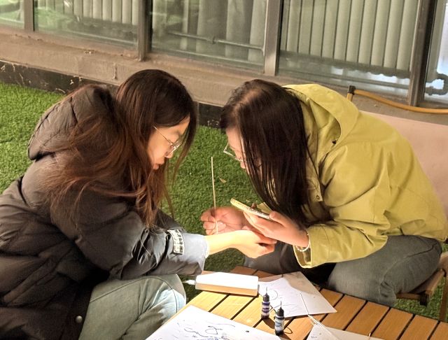 海娜绘制的过程更像是一场沉浸式冥想——当身心全然投入,专注于每一根线条的弧度、每一处纹样的衔接时,内心的浮躁便悄然褪去,只剩平和与专注。这份体验早已超越了简单的身体装饰,成为一场与自我、与艺术的深度对话。这场活动,不仅让同学们加深了对印度传统文化的了解,更促进了校园多元文化的碰撞与融合,为校园文化注入了包容开放的鲜活力量。