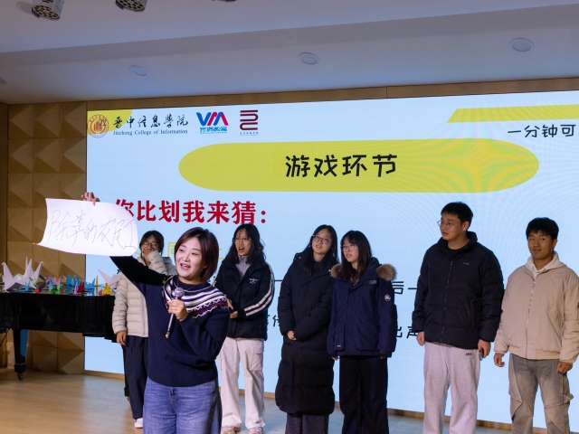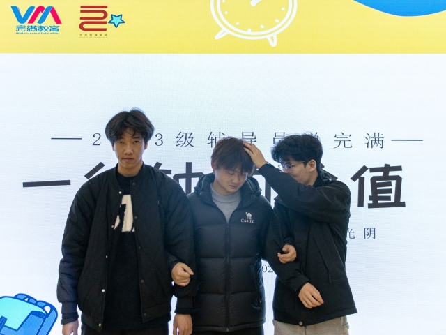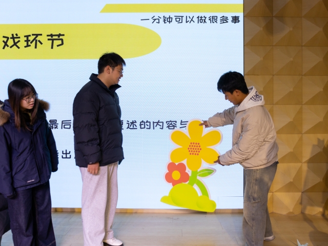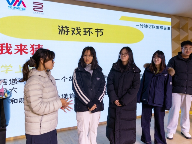 紧接着,“动作传声筒”游戏登场,6名同学仅靠肢体语言传递信息,一分钟的无声互动里笑声不断。大家直观感受到:信息传递的精准度与专注力息息相关,而高效利用每一分钟,正是破解大三“学业繁杂、目标模糊”困境的关键,恰如高老师说“合理安排时间,就等于节约时间”。