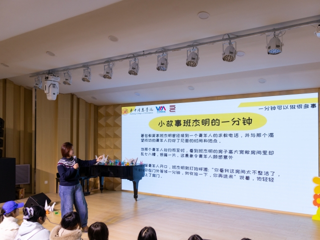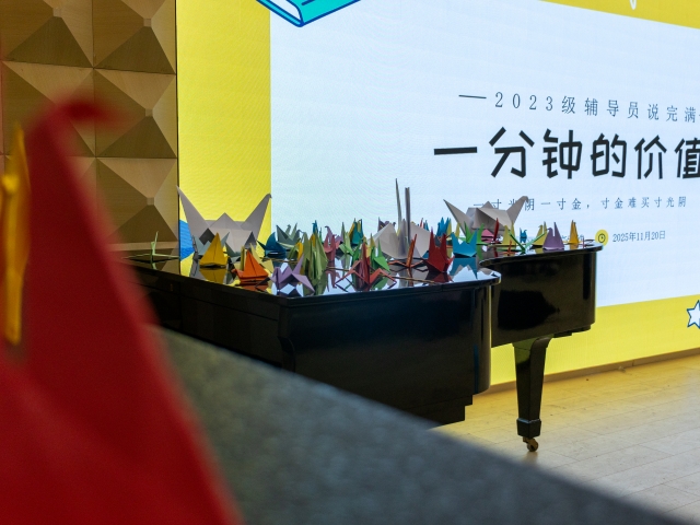 “我们每个人的内心,或许都有一间需要整理的房间。”高老师的话引人深思,随后她分享了班杰明的故事——他仅用一分钟就将杂乱房间整理得井然有序,以行动诠释“一分钟能创造的改变”。对于正需梳理学业规划、明晰职业方向的大三学生而言,这个故事恰是隐喻:混乱的思绪、零散的目标,都能在“一分钟的决断与行动”中被理顺。