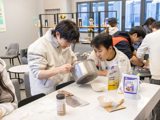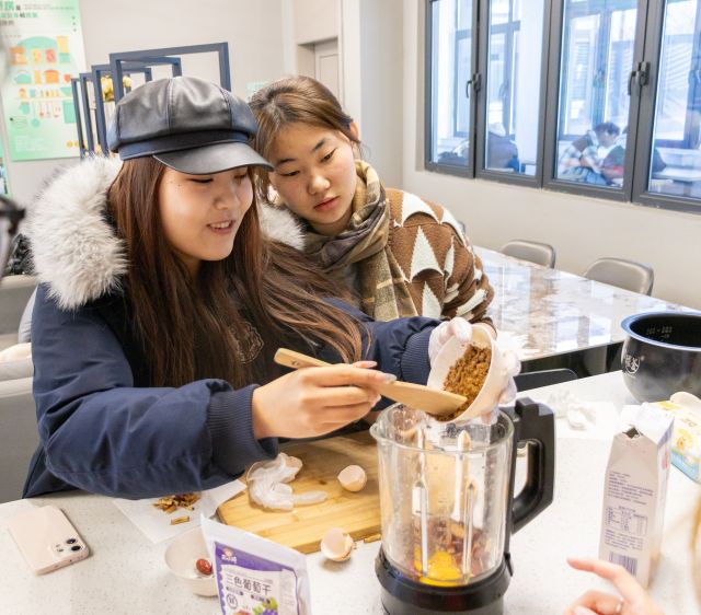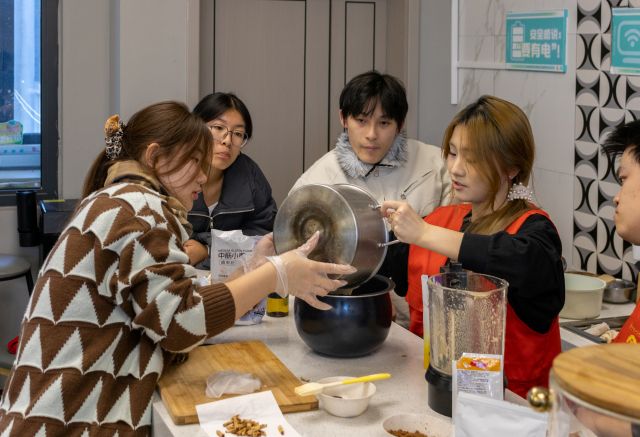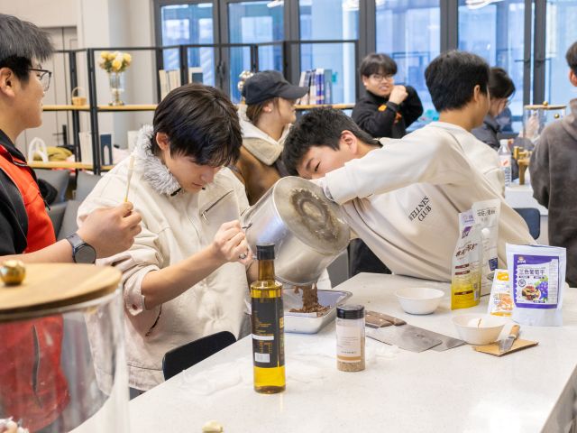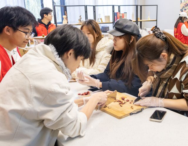 “枣熬的泥,就得用烤箱慢慢烤,才能锁住枣香!”一位参与者攥着传统糕模,拉着同伴加入烤箱队,“老辈人做枣糕,烤箱温度要盯紧,差五度口感都不一样!”。另一位同学盯着PPT 里电饭煲简化流程,果断组队:“试试用煮饭键做枣糕,说不定上课前就能搞定一份,让非遗变日常!”两种工具、两种思路,一场关于“传承与创新”的比拼,在枣香初飘的厨房里拉开序幕。