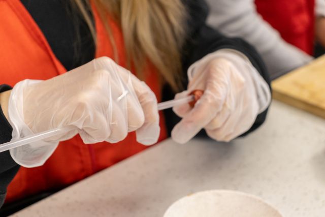 理论知识的浸润之后,便是最令人期待的手工制作环节。老传统队与邪修队的 “通关文牒” 上,步骤差异格外鲜明。老传统队的操作台前,队员们严格按古法流程推进:熬好的枣泥放凉后,与打发至蓬松的蛋液混合,分两次筛入面粉翻拌至无颗粒,倒入刷油的模具后,送入提前预热至一百八十摄氏度的烤箱,“定好二十分钟,中途不能开烤箱门,不然枣糕会塌!”组长一边看时间,一边提醒组员观察烤箱内的变化,枣香随着烤箱的热气缓缓溢出,勾得人频频探头。