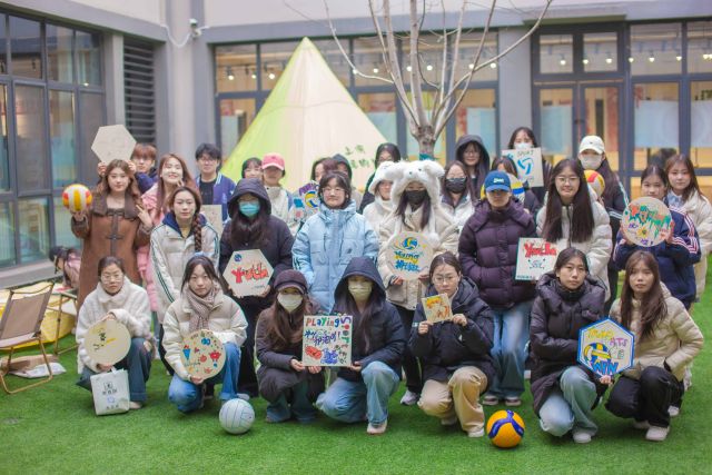 从涂鸦应援木板时的“动手实践+协作共创”,到“排球蹲”游戏中的“团队默契+极速反应”,再到展示区里的“创意分享+审美碰撞”,活动以轻盈灵动、贴近校园生活的方式,让排球文化突破传统边界,深度渗透进学子的青春日常。我们的初衷,远不止于组织一场涂鸦创作或趣味游戏——涂鸦是个性的张扬,排球是团队的凝聚,当潮流艺术与热血体育双向奔赴,我们希望参与者能在协作中收获创意落地的满满成就感,在互动中真切体悟排球运动的团队内核。不少同学曾觉得排球门槛高、有距离感,而这场轻松有趣的活动,恰恰搭建了一座桥梁:让大家直观感受排球的热血与温度,让涂鸦作品成为最鲜活的“应援嘴替”,替每一位参与者道出对排球的热爱与向往。