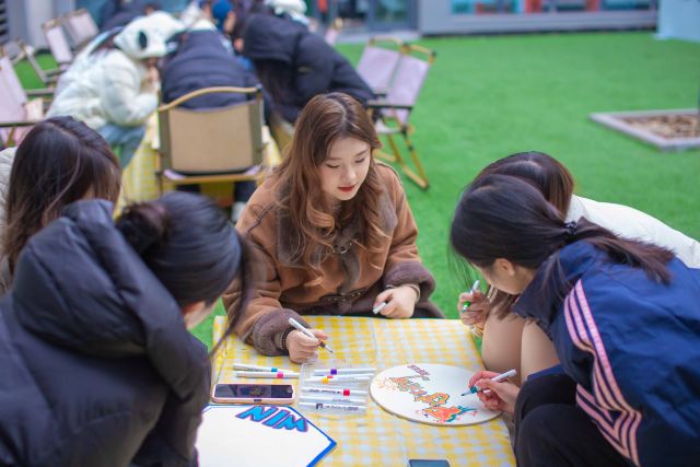 2025年11月26日下午,ATS手韵涂鸦社与YOUNG排球社携手,在上河书院北庭院繁花庭、南庭院玉兰庭联合开启“这局我C,涂鸦助威!我的排球应援嘴替——涂鸦排球应援物创作”活动。百余位参与者以5人小组为单位协作共创,在空白木板上泼洒色彩想象,让排球文化借由艺术表达突破边界;这场“体育+艺术”的潮流联动,既让灵感在协作中迸发,更让拼搏精神在画笔与呐喊中焕发全新生命力,为校园文化注入热血活力!