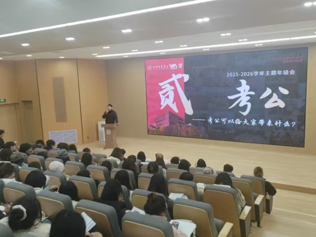 在考公方面,辅导员解育一为同学们梳理了考公的流程,详细介绍了国考、省考、事业单位考试的区别与报考要求,结合热门岗位招录情况,建议同学们根据自身专业、学历、地域偏好等因素精准定位报考方向。