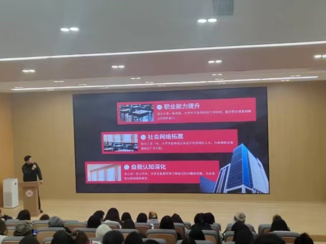 活动开始,辅导员解育一以“解码生涯密码,构建成长体系”为主题展开生涯规划分享。结合当前就业市场趋势与学院专业特色,系统讲解了生涯规划的核心逻辑与实操方法。指明有效的人生规划不是一成不变的模板,而是基于自我认知的动态调整过程。辅导员鼓励同学们将长远理想拆解为可落地的短期任务,在循序渐进中筑牢成长根基。