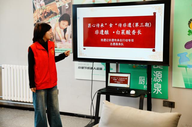 雪照云光,雪势渐急,却挡不住天光的透亮。志愿者们通过精心制作的图文资料与短视频,生动阐释了下酒凉菜太谷酸机白菜的历史源流、工艺特点及其在当地饮食结构中的重要地位。从白菜的品种选择、盐分的精准把控,到乳酸菌的奇妙作用、风味随时间的变化规律,讲解既富知识性,又充满生活趣味。参与者们了解到,这看似简单的腌制过程,实则处处是学问,承载着“顺天时、遵古法、惜食材”的传统理念。