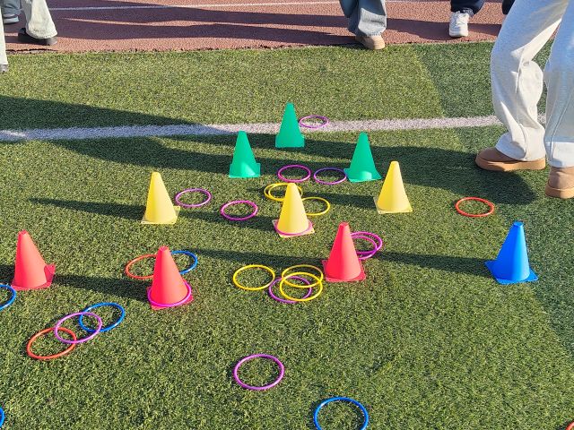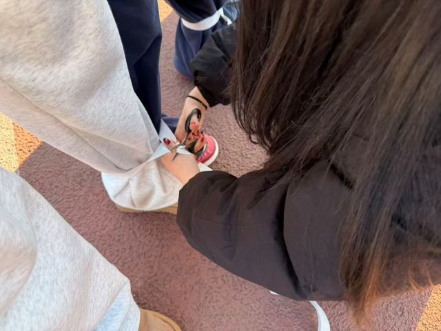 在“套圈夺宝”活动区,琳琅满目的小奖品吸引了众多目光。同学们屏息凝神,手腕轻抖,小小的套圈在空中划出优美弧线。活动现场时而因精准命中而爆发出欢呼,时而又因毫厘之差响起善意的笑声与鼓励的掌声。这不仅是眼力与手感的比拼,更成为同学们互相指导、分享技巧的交流场。