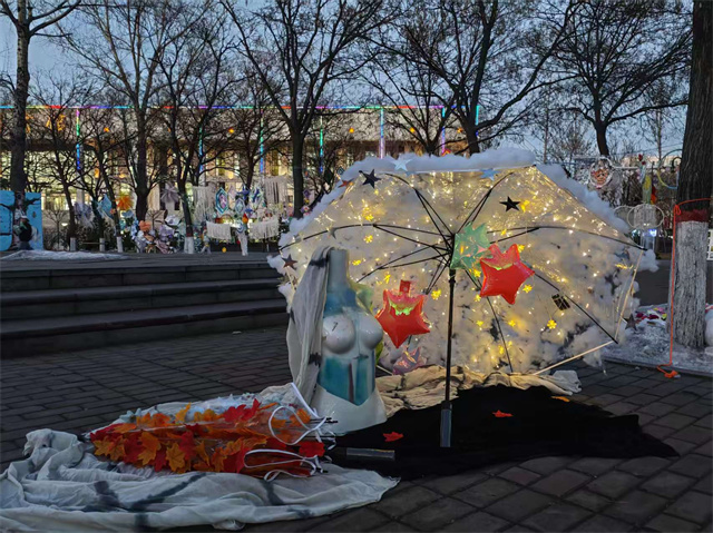 天色渐暗,真正的魔法时刻降临。白天安静的作品,在夜色中纷纷“活”了过来。