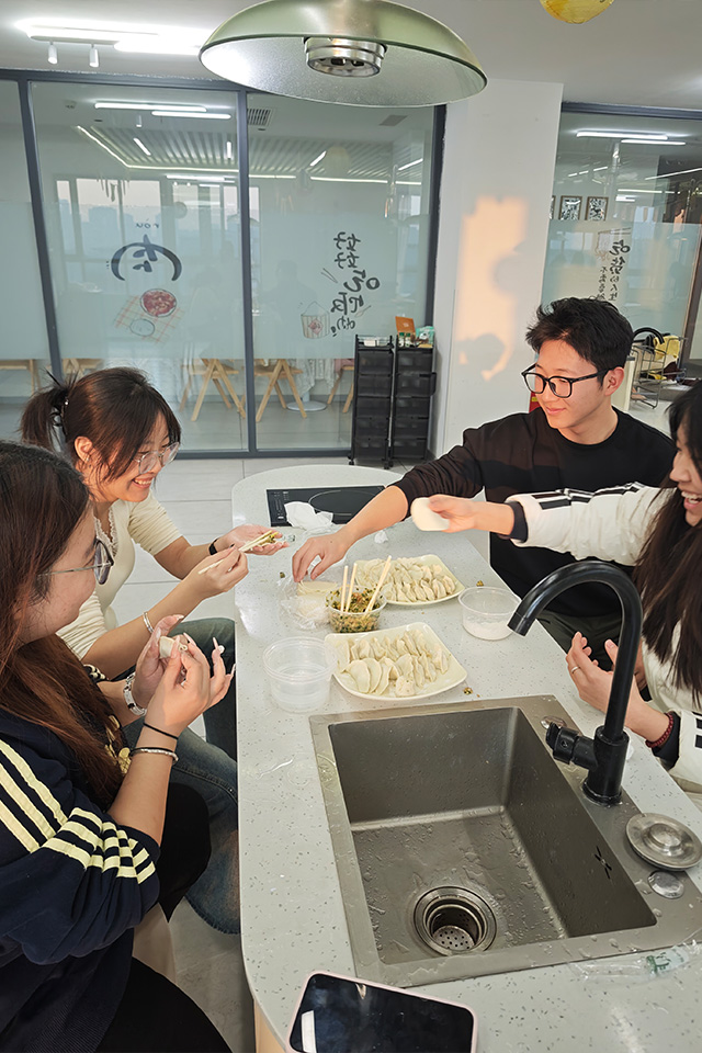 循着冬至的民俗脉络,艺术传媒学院异科导师林娣老师也带领 17 名学子齐聚毣谷书院,开展了一场满溢温情的冬至包饺子活动。大家以面皮为媒、以馅料为情,在欢声笑语中感受传统节气的独特魅力,让同窗相聚的温暖在烟火气中愈发浓厚。