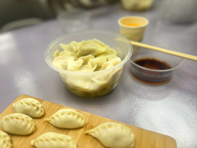 接下来,同学们分组协作包饺子。刚开始,不少人动作生疏,包出的饺子要么露馅要么形状歪斜,但大家互不嫌弃、互相请教,分享捏褶的小窍门。从手忙脚乱到熟练上手,共享厨房中满是协作的温馨。待一锅锅热气腾腾的饺子出锅,鲜香气息扑面而来,同学们围坐一桌分享劳动成果,一口下去暖意直达心底,脸上满是满足的笑容。