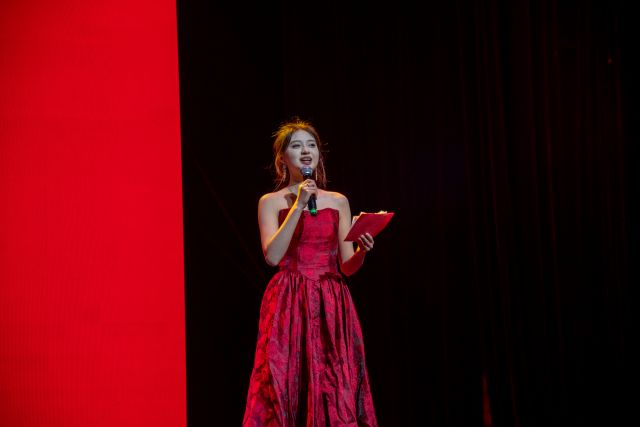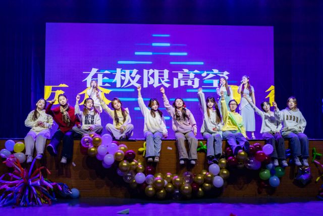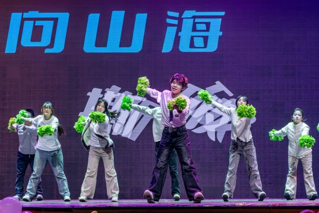在艺术实践部同学们《我乘着风飞过来》的合唱声中,晚会正式拉开帷幕。悠扬旋律寄托祝愿:愿每个人怀揣热爱,乘风而行,奔赴心之所向。