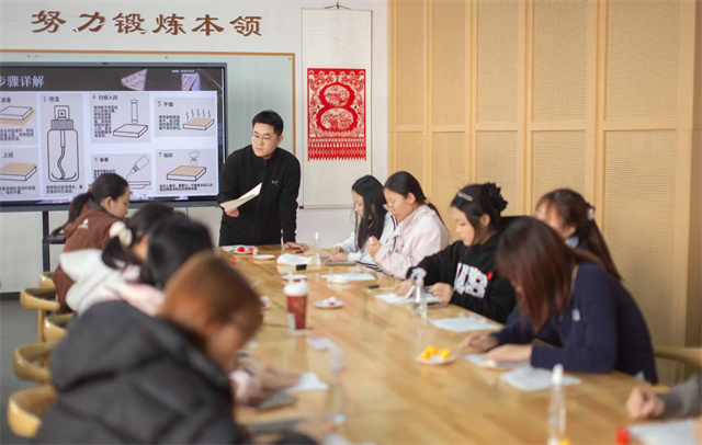 活动现场,非遗传承人郭子龙老师为同学们详细介绍了拓印技艺的文化价值,讲解了宣纸、拓包、打刷等工具的使用方法,以及喷湿拓版、铺纸贴合、扫纸入凹、分层施墨等拓印关键步骤与操作技巧,着重强调了施墨力度、墨色叠加、细节补墨等注意事项,让大家对拓印流程形成清晰认知。