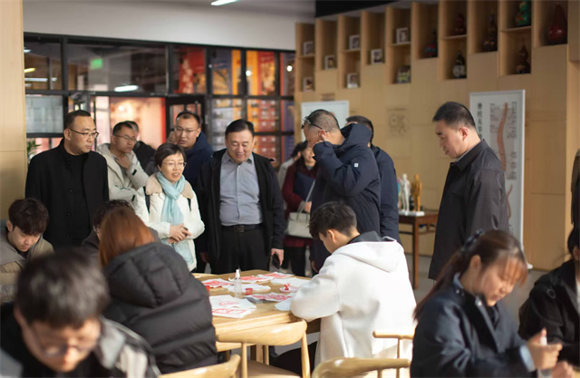 这场充满古韵与匠心的拓印体验,同样赢得了莅临现场的各位领导与老师的一致赞许。大家见证着古老的拓印技艺在年轻学子手中焕发新彩,看着吉祥纹样在墨香中层层浮现,纷纷感叹这正是非遗文化与校园教育完美融合的绝佳体现。而这份对传统文化的坚守与创新,也让在场的每一位参观者都感受到了青年一代传承文化的坚定力量,为非遗的当代传播注入了满满的青春活力。