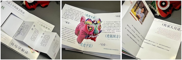 荣获全国一等奖的《虎佑千年》主题书籍设计,以山西非遗黎侯虎为核心,融多元传统装帧工艺于现代设计中:封面与目录采用龙鳞装,书页错落如鳞、翻动似龙身,尽显黎侯虎的灵动神秘;介绍其制作工艺的内页用经折装,展开如画卷,既便于翻阅,也象征文化的延续新生;还搭配蝴蝶对表与裸脊锁线,后者袒露书籍结构,既显工艺之美,又贴合黎侯虎质朴特质,让读者在触摸翻阅间沉浸式感受非遗魅力,实现传统技艺的致敬与新生。