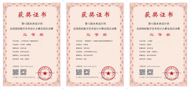 在刚刚落幕的2025年第13届未来设计师·全国高校数字艺术设计大赛(NCDA)全国总决赛中,晋中信息学院师生捷报频传。本届大赛是全国数字艺术设计领域具有广泛影响力的专业赛事,共有1,893所高校参与、征集作品29万余件,设有29个省级赛区。其中,985高校与“双一流”大学参赛率达95.2%,设计学学科评估C级以上的高校悉数参赛。经过校级赛、省赛及全国总决赛等多轮评审选拔,赛事竞争激烈、标准严格,充分体现了大赛的专业性与权威性。