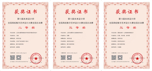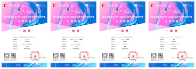 在全国层面竞争异常激烈的背景下,我校学生凭借扎实的专业功底与鲜明的创意思维,实现了“以少胜多”的突破性成果。其中,部分作品以山西地域文化为灵感,将传统元素与现代设计理念融合,获得评委一致好评,充分体现了我校在文化创新与数字设计融合教育方面的特色与优势。
